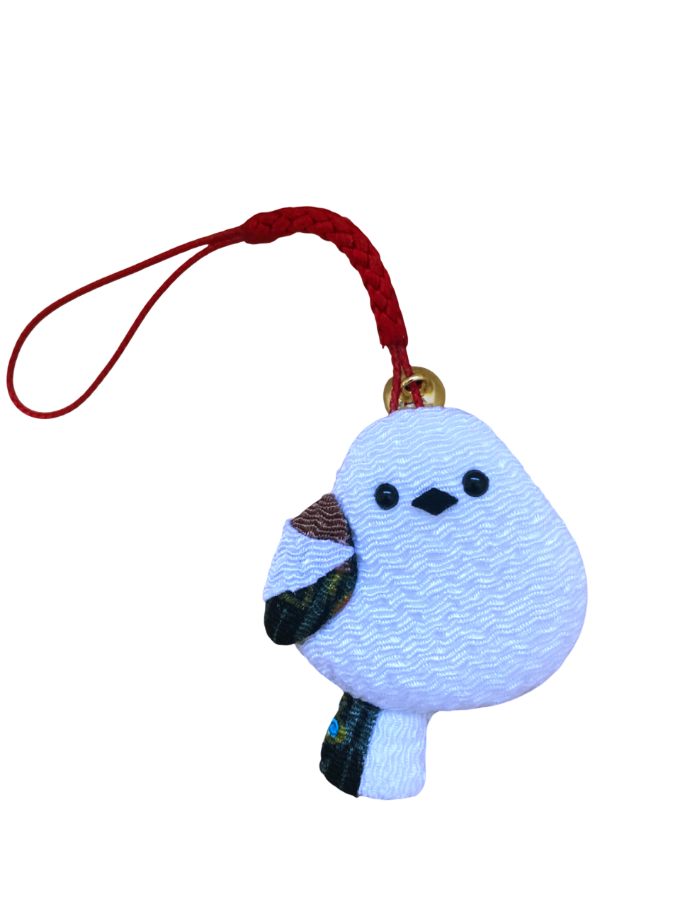 日本の伝統的なちりめん生地を使用した手作りのアート作品です。大人気の愛らしい鳥「シマエナガ」の愛らしいデザインが魅力的で心を和ませます。